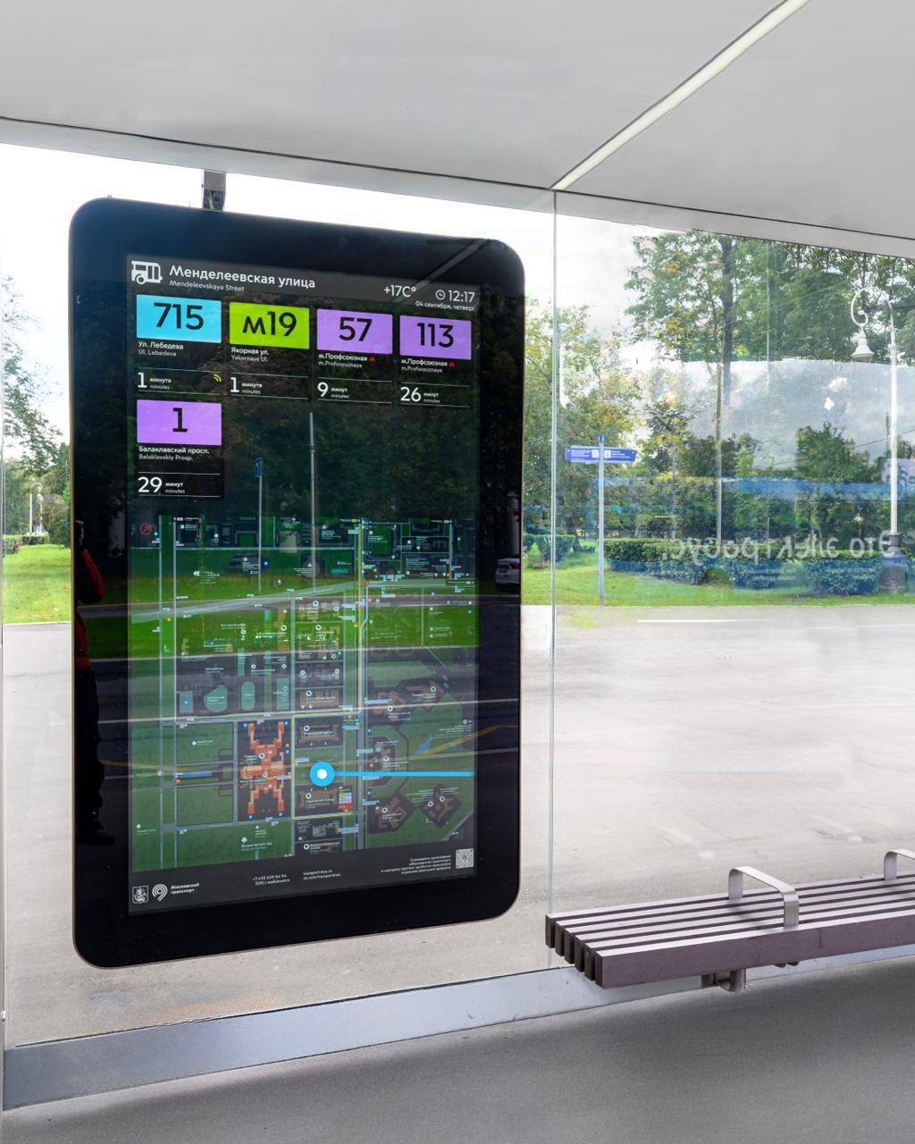Москва — современный город технологий, и сегодня особенно важно переходить от статичных решений к цифровым. В рамках этого направления мы реализовали проект по оснащению остановочных павильонов возле Московского государственного университета современными медиаэкранами.